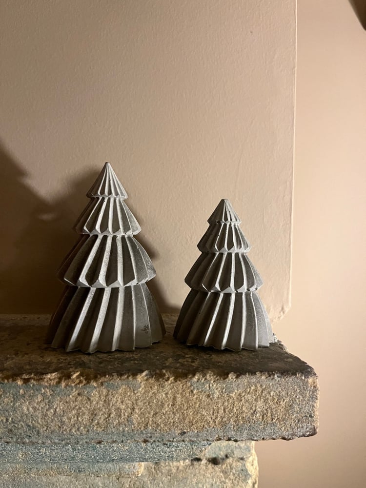 Formed with cement these textured grey trees style traditional Christmas perfectly in tune with modern decor. Textured and natural, these tree add style to any space.